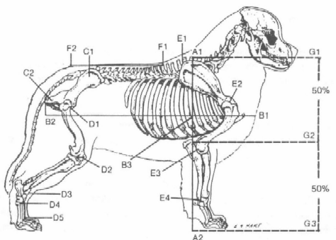 G1-G2 Distance from withers to elbow and withers to brisket (50%)